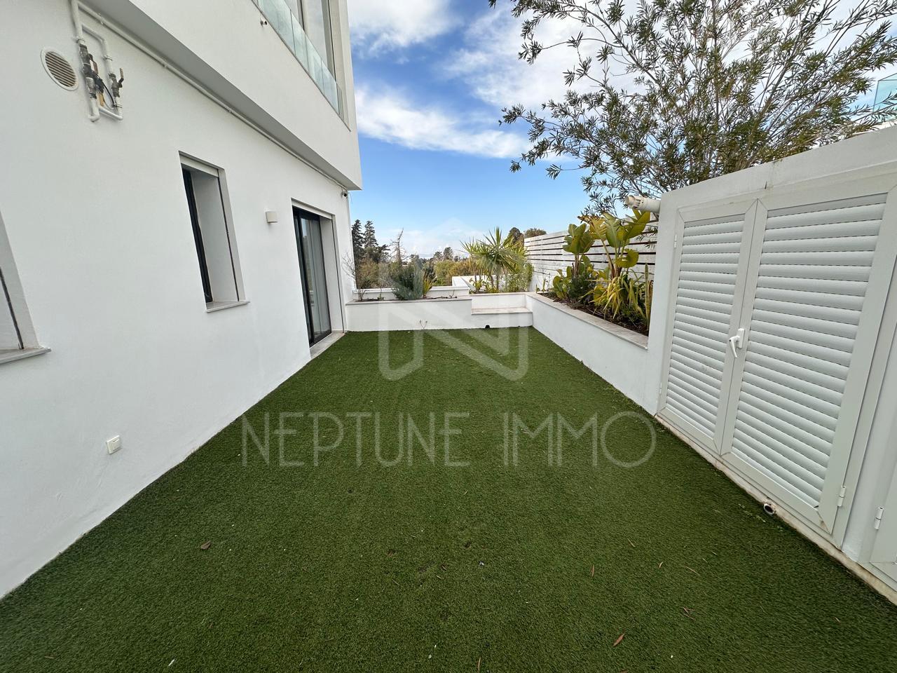 Neptune immo agence immobilière située à la Marsa vous propose à la location un duplex haut standing avec jardin à Gammarth