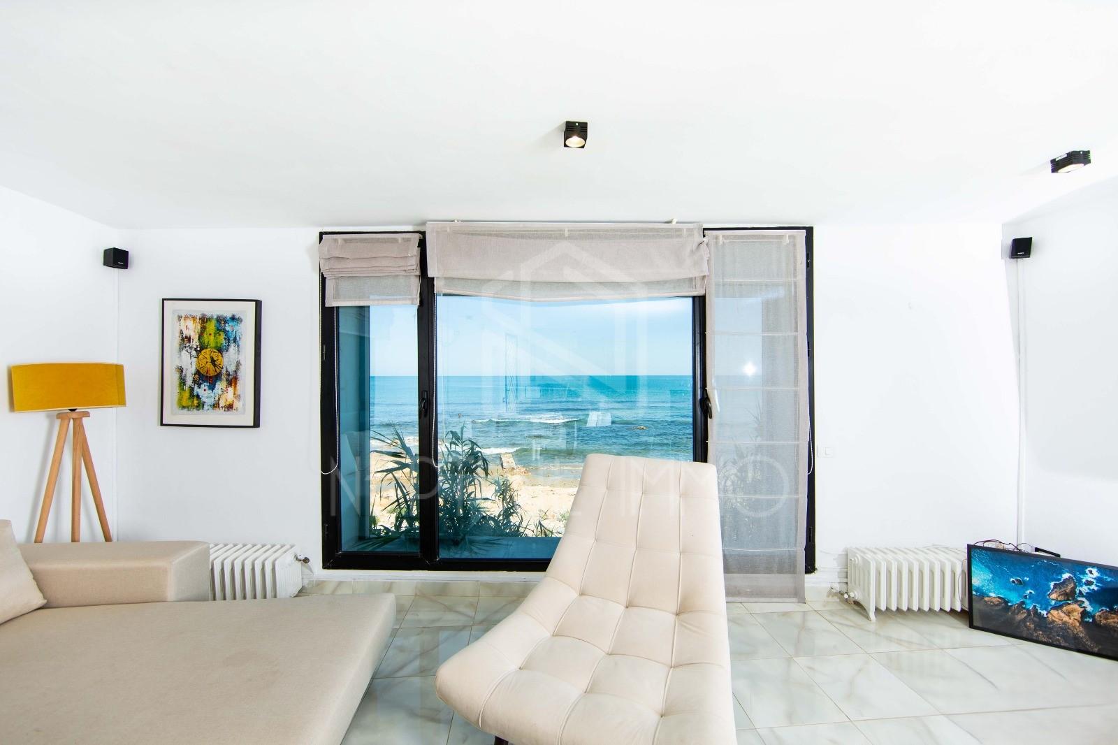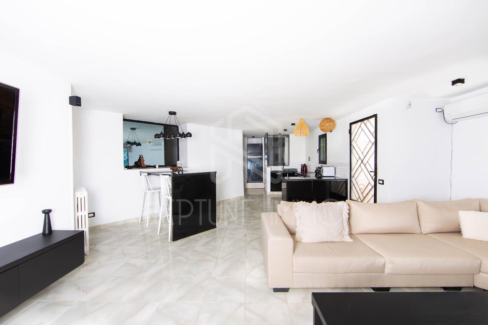 Neptune Immo, agence immobilière située à La Marsa, vous propose à la location un magnifique appartement meublé en bord de mer, bénéficiant d’une vue imprenable sur la mer.