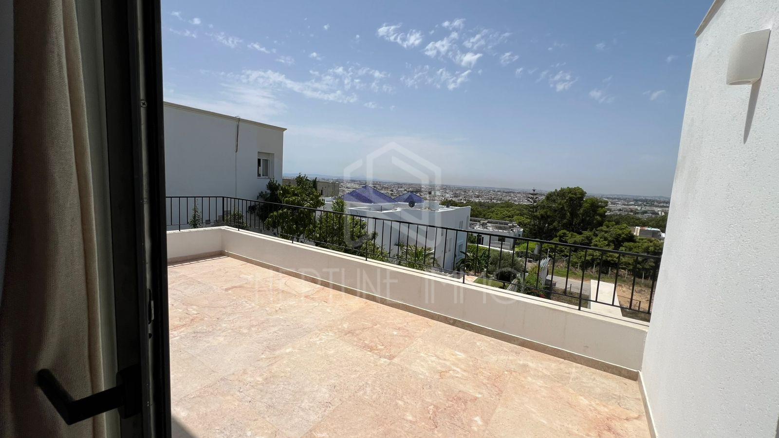 Neptune Immo, agence immobilière située à La Marsa, vous propose à la location une superbe villa avec piscine, idéalement située sur les hauteurs de Gammarth Supérieur.