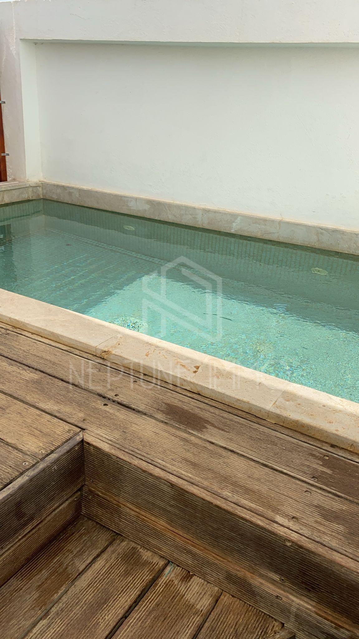 Neptune immo agence immobilière située à la marsa vous propose à la location un triplex avec piscine dans une résidence bien gardée et sécurisée à Gammarth