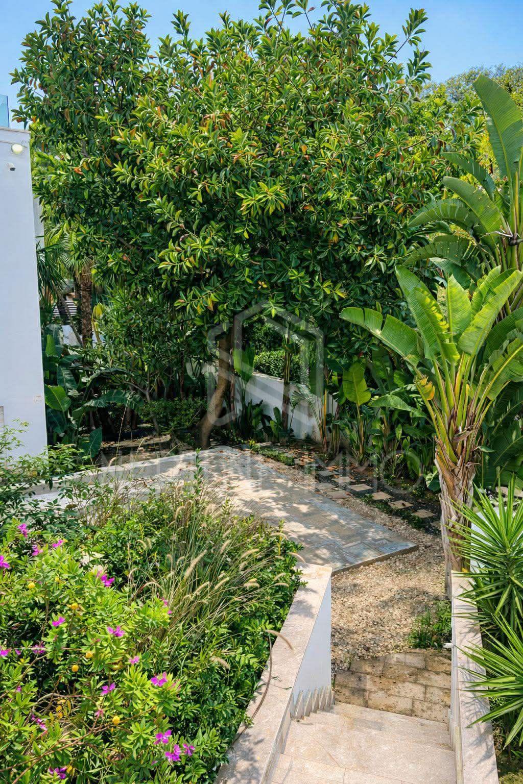 Le jardin, somptueux et soigneusement aménagé, offre un grand espace repas extérieur, parfaitement adapté aux réceptions et aux soirées d’été dans un cadre élégant et paisible.