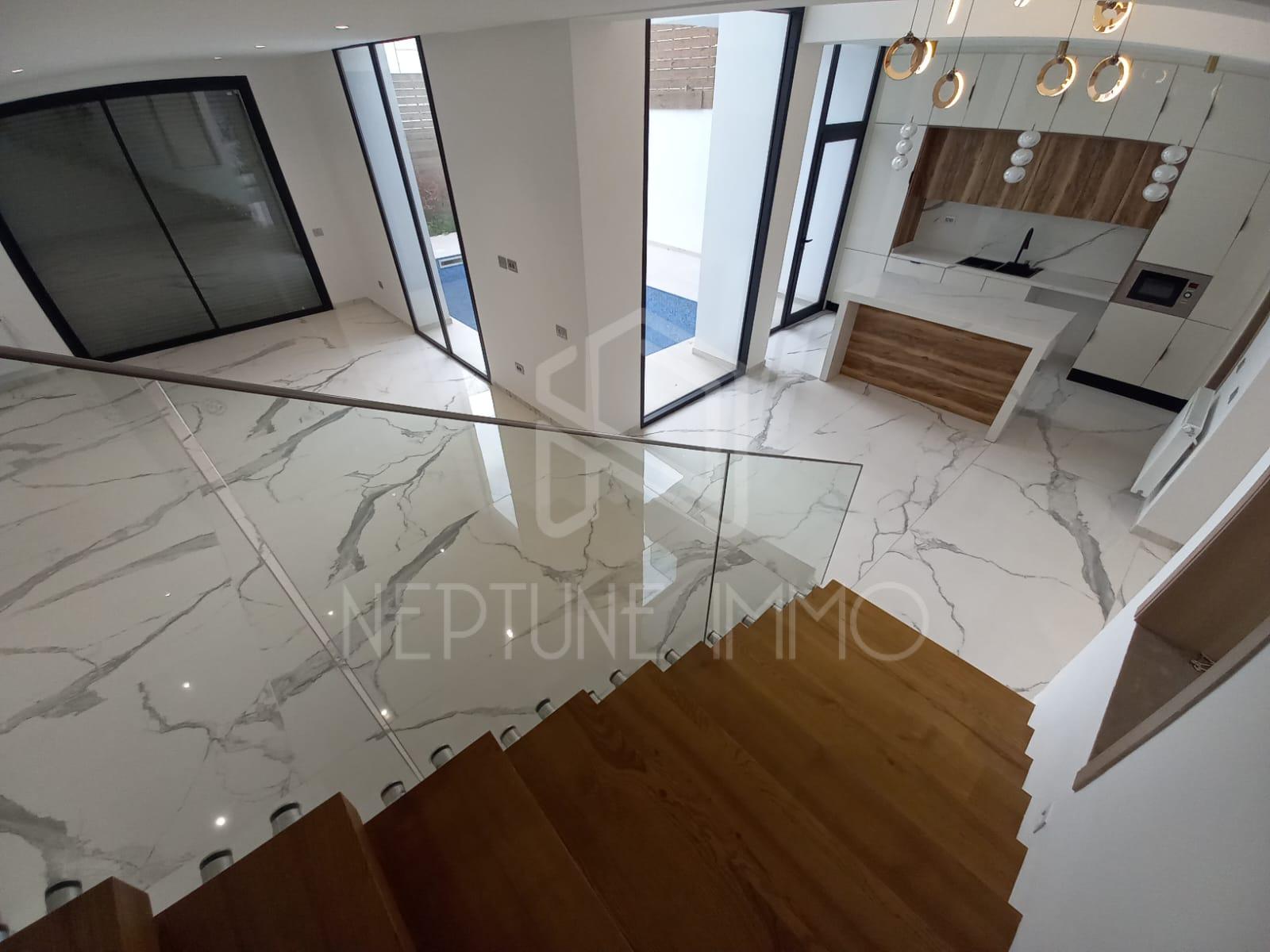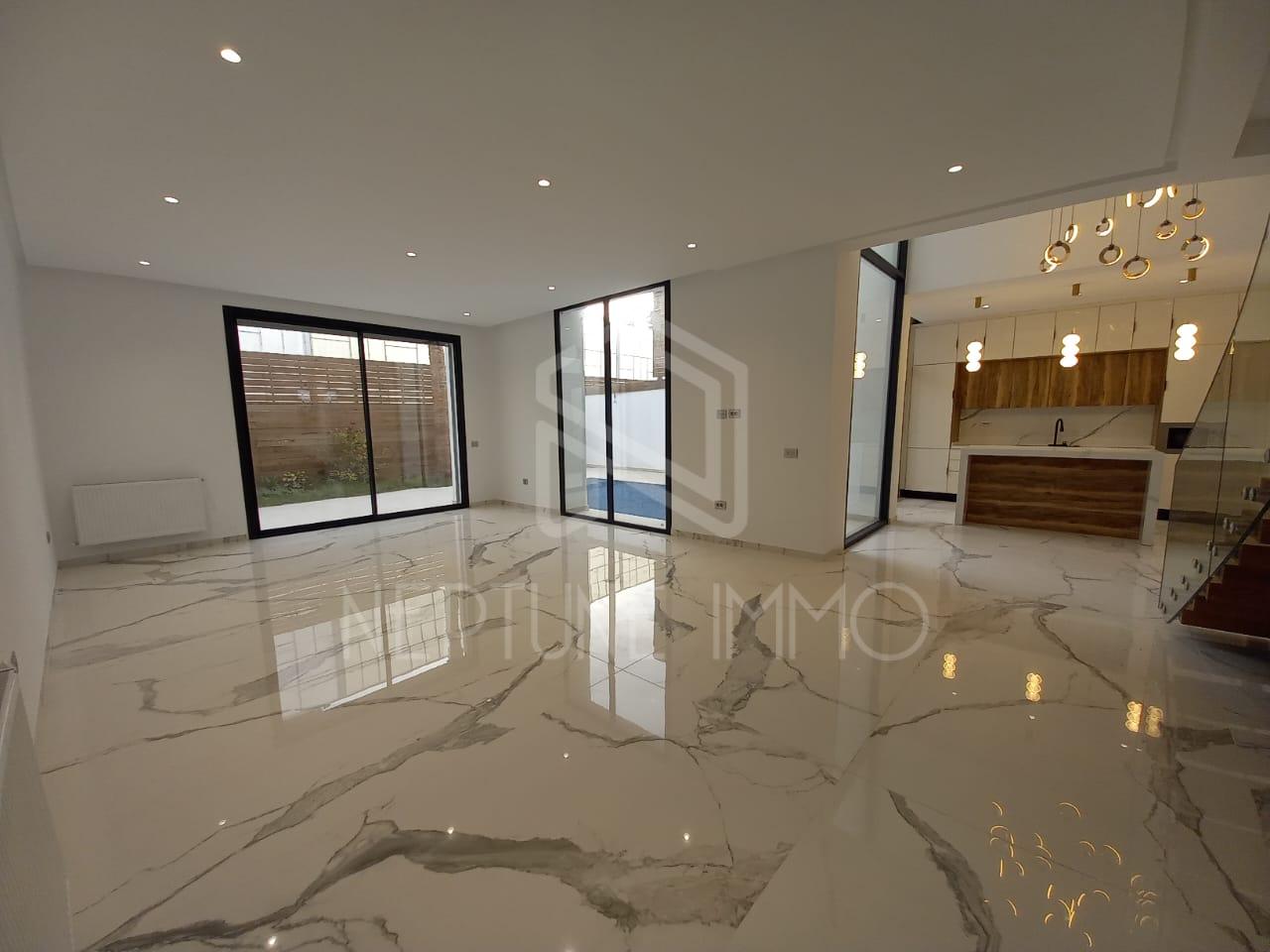 Neptune Immo votre agence immobilière située à la Marsa vous propose à la vente une superbe villa jumelée de type s4 avec piscine à la Soukra.